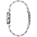 Styled in stainless steel with a beautiful mother-of-pearl dial adorned with a diamond accent at the 8 o'clock position. The look is delicately completed with a cabochon crown, which ties in perfectly with the coloured hands.