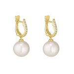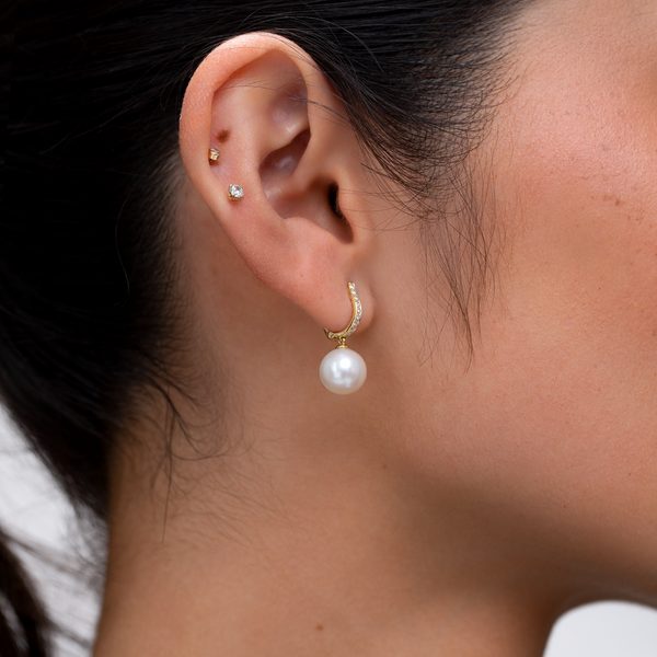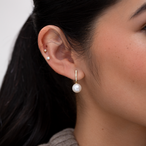 Bring pearls into your ear stack with these luxurious earrings. Featuring curved hoops set with 0.18-carats of natural diamonds, finished with a lustrous pearl.  Understated elegance at its best.