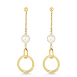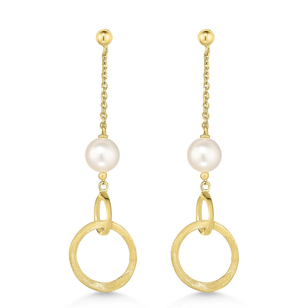 Inspired by natural forms, these pearl earrings showcase timeless design with a contemporary edge. Crafted from 9ct yellow gold, they feature cultured pearls interspersed with brushed and polished gold discs. Style them alone, or stack with gold studs or huggies for a contrasting finish. We love these earrings worn with the matching necklace and bracelet.