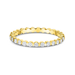 This 18ct yellow gold ring features 0.84-carats of glittering round brilliant cut natural diamonds. It's crafted with a slim 2mm silhouette that makes it perfect for stacking.