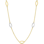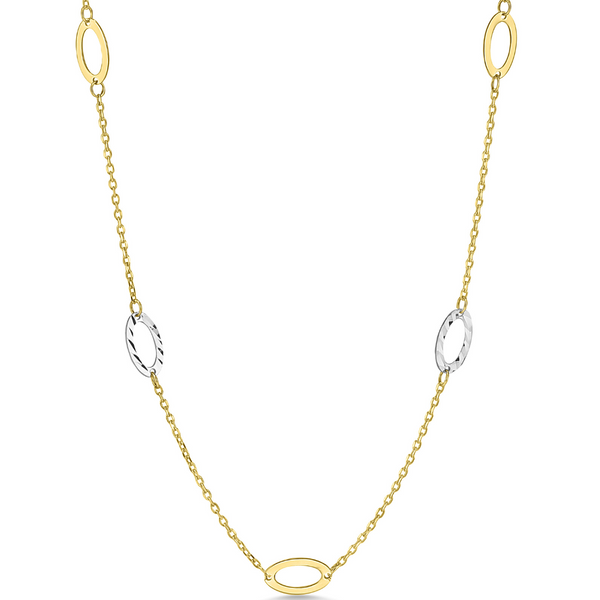 Crafted in Italy from 14ct yellow and white gold, this pretty necklace features contrasting oval links. The white gold links are finished with a light-catching diamond cut finish. Wear solo, layer with more beaded styles or stack with one of our signature chunky necklaces. We adore this mixed metal look.