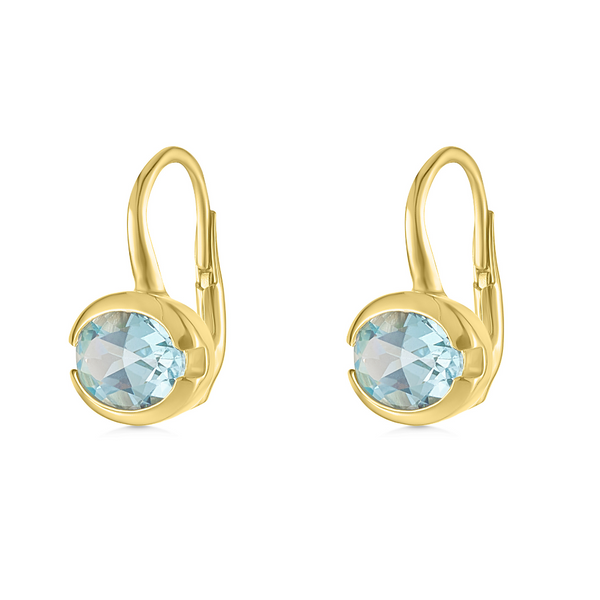 Crafted in Italy from 14ct yellow gold, these beautiful blue topaz drops are bezel set and strung from a link chain. We adore them worn with the matching pendant.