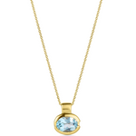 Crafted in Italy from 14ct yellow gold, this beautiful blue topaz pendant is bezel set and strung from a link chain. An understated design that is the perfect layering piece.