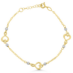 Crafted in Italy from 14ct gold, this stunning two tone bracelet features open heart charms and white gold beads with a diamond cut finish. We love the contemporary mix of white and yellow gold in this unique piece.