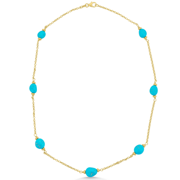 Bring colour to your jewellery collection with this impactful necklace. Crafted in Italy from 18ct yellow gold, it features beautiful turquoise, the birthstone for December. The perfect gift for the lover of unique high jewellery. We love it worn with the matching bracelet.