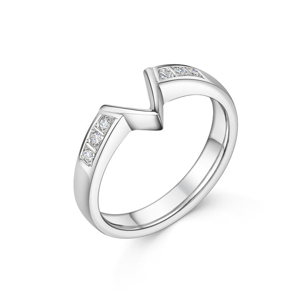 Designed to nest neatly with your engagement ring, our diamond V ring is crafted with a slim silhouette that makes it perfect for stacking. Glistening round brilliant diamonds are set in an 18ct white gold band.