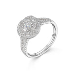 Crafted from 18ct white gold, this stunning ring is centered with 0.81-carats of sparkling diamonds arranged to resemble a flower. The diamonds are a superior G/H in colour.