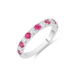 Vibrant red rubies pair beautifully with diamonds. Crafted from 18ct white gold, the glittering 0.33-carats of diamonds are alternated with 0.61-carats of rubies in a pavé setting. It would make a gorgeous alternative eternity ring.