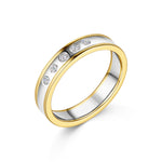 Five glistening diamonds set in 18ct white gold are the centre point of this two tone band. The perfect option if you love both white and yellow gold. The total diamond weight is 12.5 points.