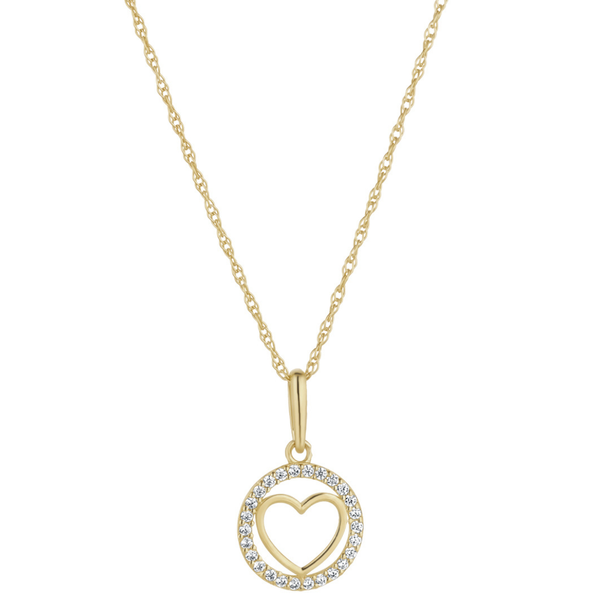 Discover our signature Heart CZ Pendant paired with a delicate solid gold chain. Crafted from 9ct yellow gold, the heart-shaped pendant is surrounded by a circle set with glittering cubic zirconias. Wear solo, or style with other fine necklaces for a more layered look.