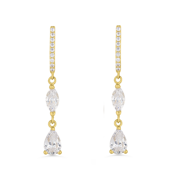 A distinctive addition to your curated ear stack. Crafted from 9ct yellow gold and fastening with a butterfly back, these best selling drops stand out with cubic zirconia detailing. Wear solo, contrast with plain studs for added impact.