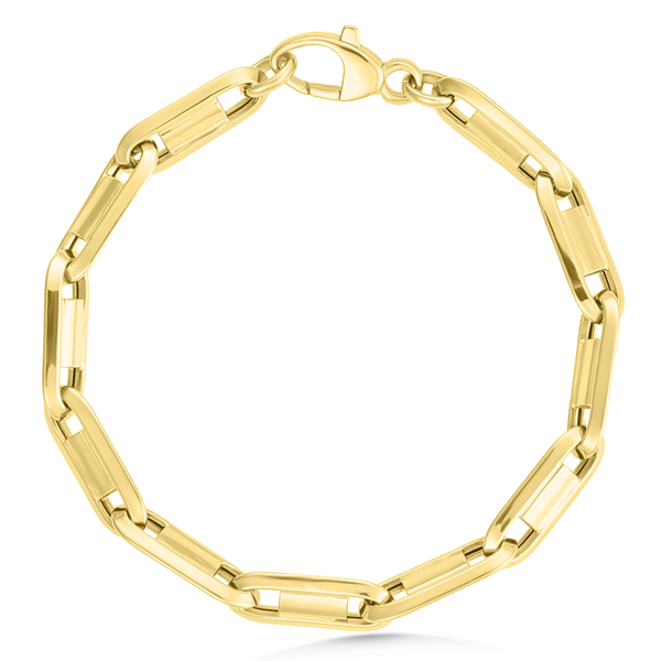 Crafted in 9ct yellow gold, this striking bracelet features bold paperclip style links with a smooth, polished finish. The elongated rectangular links create a strong, contemporary look while maintaining a clean profile on the wrist.
