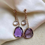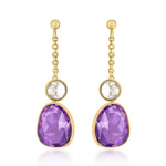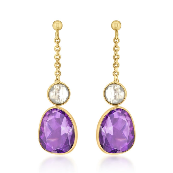 The beautiful, royal purple amethyst gemstone glows brightly in these drop earrings. Crafted from 9ct yellow gold, we love them worn with other coloured stone and yellow gold jewellery.