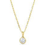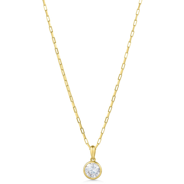 Featuring a glittering bezel set cubic zirconia, this classic necklace is crafted from 9ct yellow gold. Strung from a paper link chain, it's endlessly wearable -  the perfect everyday piece to add to your solid gold jewellery stash.