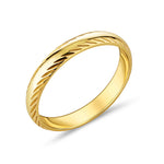 An elegant 9ct yellow gold 3mm comfort fit ladies wedding band, complete with a slanted dash edge design. This subtle and classic style would complement any engagement ring.