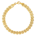 Crafted from 9ct yellow gold, this flat link gate style bracelet is truly versatile. The high polished links gleam in the light. Pair with a shimmery gold tennis bracelet for the perfect everyday stack.