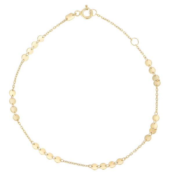 This dainty bracelet will complement any outfit. Stylishly designed with multiple circle-shaped discs. Crafted from 9ct yellow gold, it's an all-round adaptable piece that will work equally well for day or night. Its lightweight style is perfect for layering.