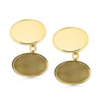 Crafted from 9ct yellow gold, these cufflinks feature an intricate pattern on one side and a high polished finish on the other.