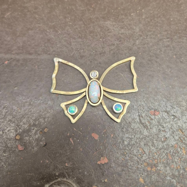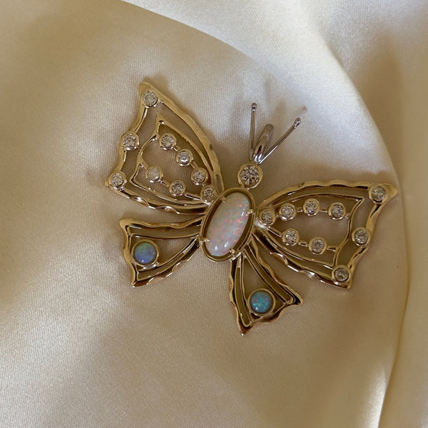 A very special bespoke piece that we couldn’t wait to share. This handcrafted butterfly pendant was remodelled from our customer’s existing jewellery — gold and diamond from a pair of earrings, a pendant and a ring, alongside an oval opal from an opal pendant. We added the two smaller opal gemstones to the design.