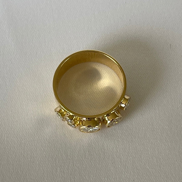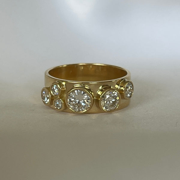 The finished result is a unique & contemporary ring, yet it still feels timeless. Sparkling white diamonds of different carat weights, sprinkled in a delicate arrangement We absolutely love this creation & a huge thank you to our customer for choosing us to reimagine their beloved jewellery.