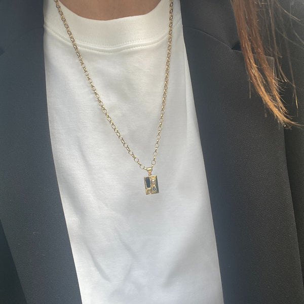 Creating this bespoke gold pendant was really special. It was remodelled from four separate gold rings, and the onyx (black gemstone) and gold heart were from the very first ring our customer’s late husband gave to her.