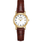 Strap material and colour: Brown leather strap and buckle
