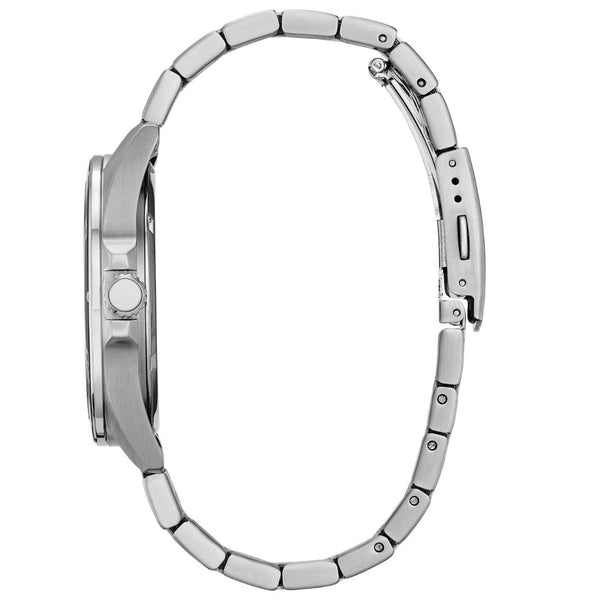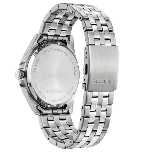 This Citizen Eco-Drive gents' watch is a classic timepiece. It features a black dial with baton indices and a handy day/date window. The dial is protected by sturdy mineral glass and is set into a 40mm stainless steel case. Complete with a two tone stainless steel bracelet, this Citizen men's watch is perfect for men who care about timekeeping style.