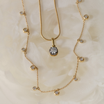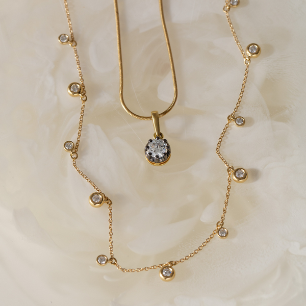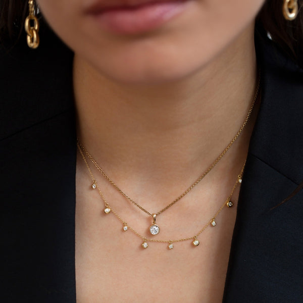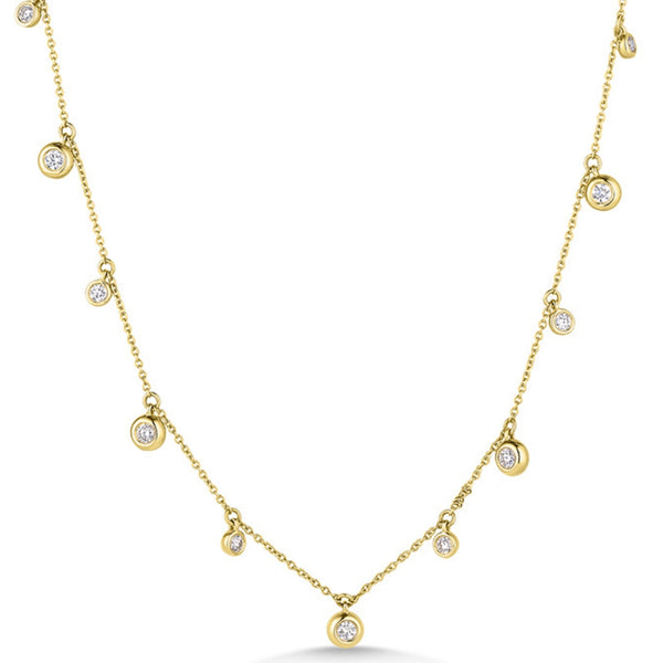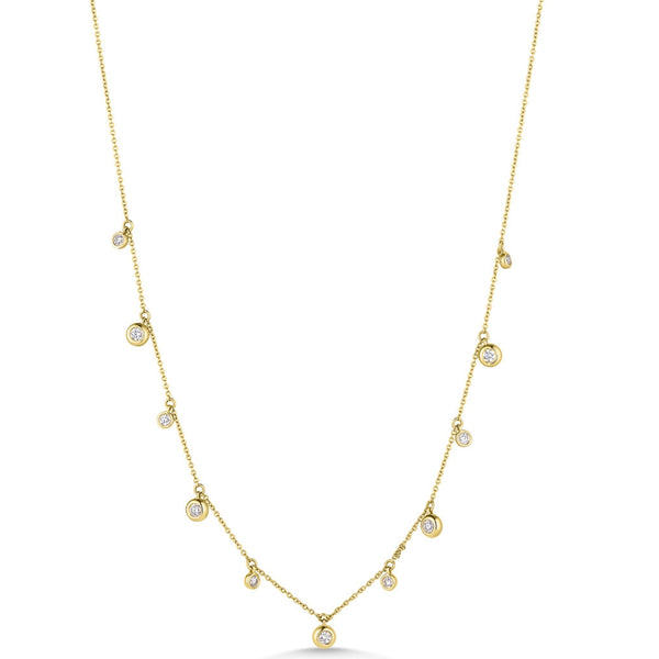 Look to this 18ct yellow gold necklace as your everyday investment piece. Featuring round brilliant cut natural diamonds in bezel settings that float on the neckline. Contrast with a more statement style or wear solo.