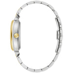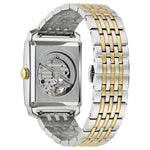 From the Sutton Collection by Bulova, this timepiece delivers sophisticated style with a mechanical heart. The refined rectangular two-tone stainless-steel case features a matching bracelet a gold-tone frame around a curved mineral crystal.