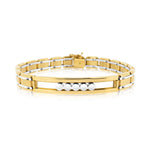 Looking for high jewellery that stands out from the crowd? This two tone gent's bracelet is handsomely designed. Made from 9ct white and yellow gold, the links feature a high polish finish so they gleam in the light.