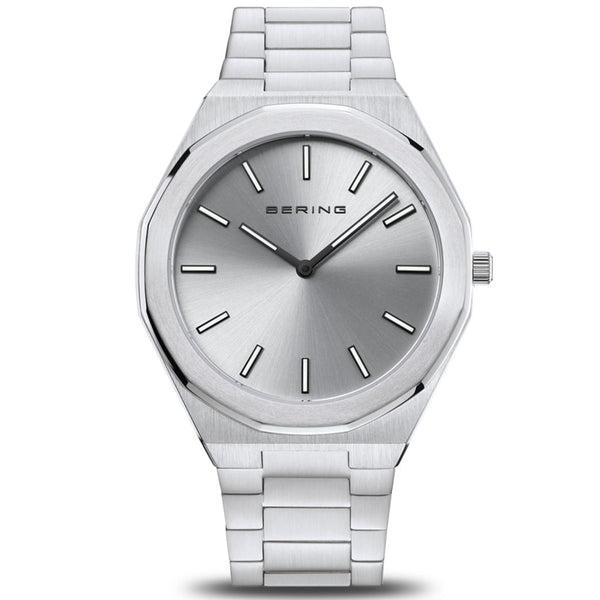 The skin-friendly stainless steel used guarantees a glamorous appearance. The cool look of the steel and the purist, clear line of the Bering watch design complement each other ideally. The case is made of pure and high-quality stainless steel (316L), as also used in medical technology.