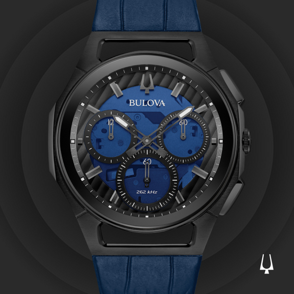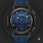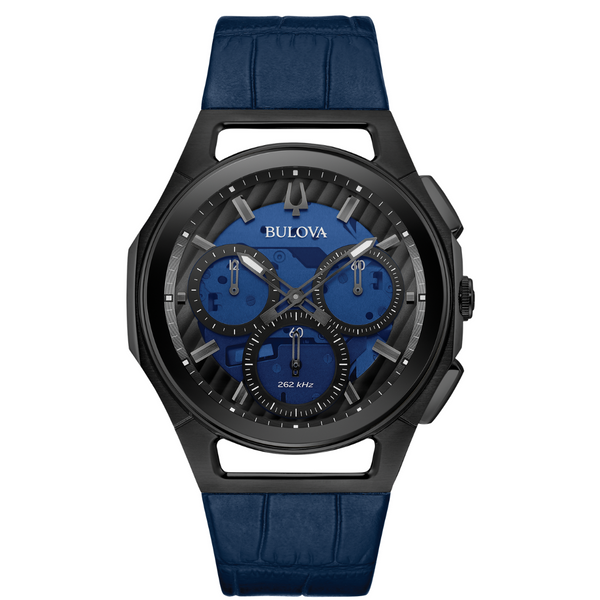 Strap material and colour: Blue Leather Strap with Deployment Clasp