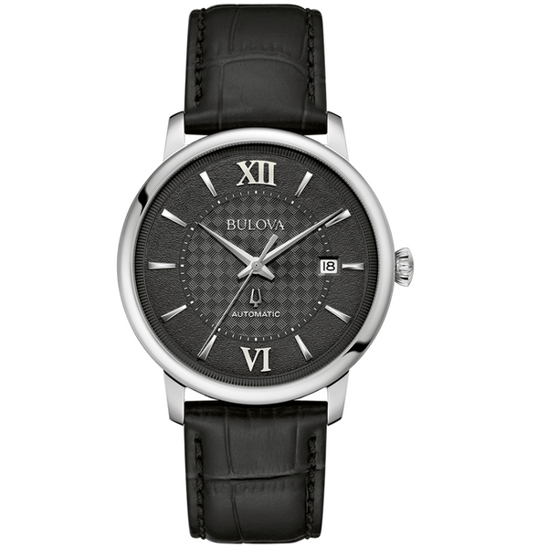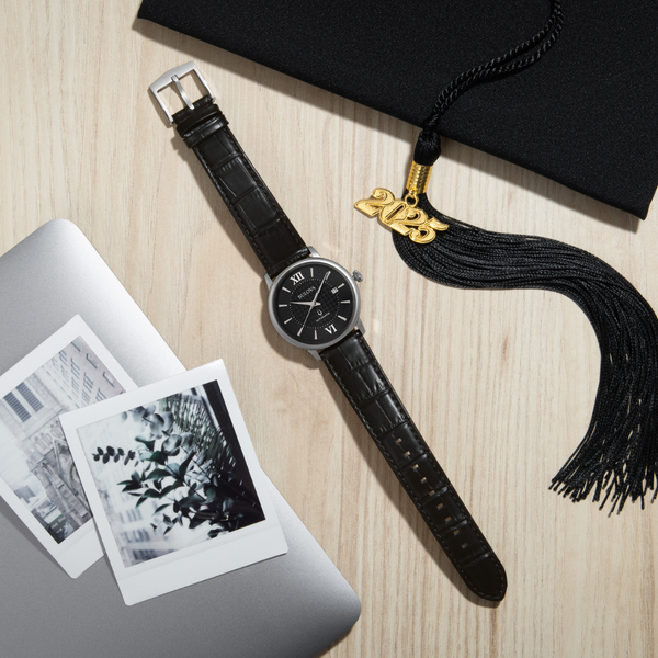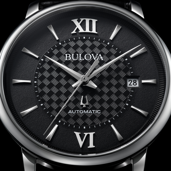 The timepiece is naturally paired with a black leather strap fitted with quick-release spring bars for easy changes and a 3-piece closure for ideal comfort. When you need the very best, look no further than the men’s Bulova Hudson.
