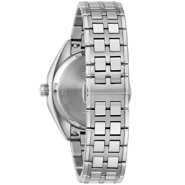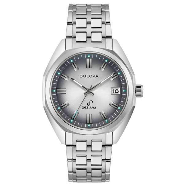 The new Jet Star is powered by Bulova’s proprietary high-precision quartz Precisionist movement, a revolutionary 8-jewel quartz mechanism vibrating at a remarkable 262kHz, accurate to seconds per year with increased resistance to temperature changes, and with a sweeping seconds hand. Complementing the stainless steel case is a matching bracelet with a deployant clasp closure and latched spring bars for easy release. Make an impression in legendary style with the high-flying Bulova 1973 Jet Star, an iconic design recreated for the modern connoisseur.