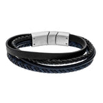 Steelwear's Miami multi strand gent's bracelet features black leather. Woven in different patterns, it fastens with a magnetic snap closure.