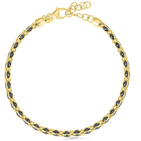 The ultimate bracelet. This statement bracelet features eye-catching black cubic zirconias, cleverly set in the gold links. Designed to stacked with a mix of bangles and bracelets, or worn with the matching necklace.