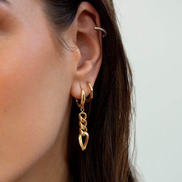 These statement drop hoops feature suspended curb links in an art-deco inspired style. Crafted in Italy from 14ct gold, they're our new everyday favourite.