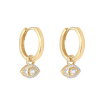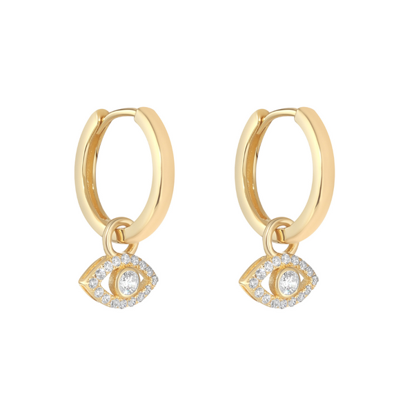 Crafted from 18ct gold plated sterling silver, these huggie earrings feature an evil eye design with sparkling cubic zirconias. The evil eye is rooted in ancient Greek culture and is believed to ward off negative energy. Now a popular symbol of protection and style, these earrings make a powerful statement.
