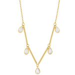 The ultimate charm necklace. This statement necklace features eye-catching pear cut cubic zirconias, suspended from gold bar links. Crafted from 18ct gold vermeil, it's the best base for delicate necklace layers.