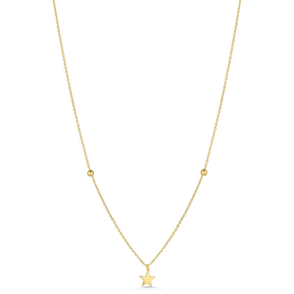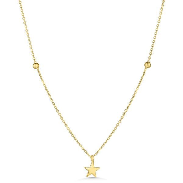 Featuring a dainty star strung from a link chain adorned with two gold beads, this pendant is crafted from 9ct yellow gold. The perfect gift for yourself or someone else, stack with other fine gold pendants for a standout look.