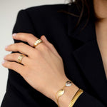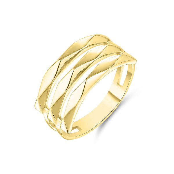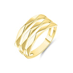 Crafted from 9ct yellow gold, this elevated statement ring features a wave inspired design. Style with simple bands for an instant ring stack.