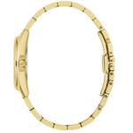 Strap material and colour: Gold tone stainless steel