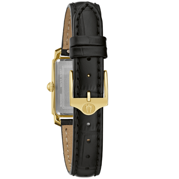 A striking mother-of-pearl dial is set with three diamonds and gold-tone batons to mark the hours, while polished gold-tone hands display the time with exceptional legibility. The only risk with this new Bulova ladies’ timepiece is you may never want to take it off.