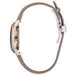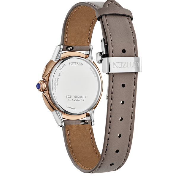 The look is completed with a comfortable taupe leather strap. With this watch, you'll never need to worry about replacing the battery — this watch is sustainably powered by any light with our proprietary Eco-Drive technology.