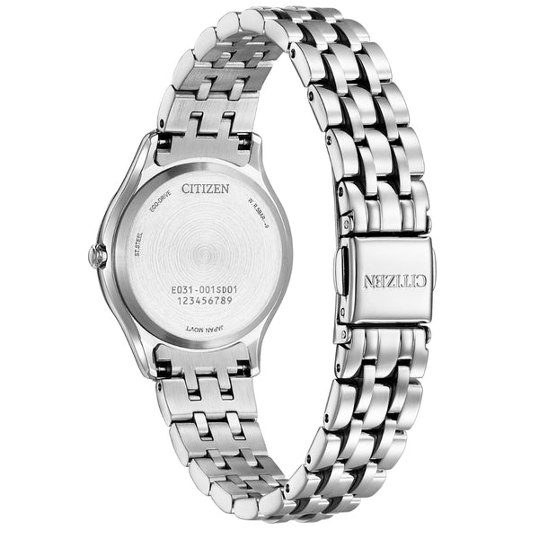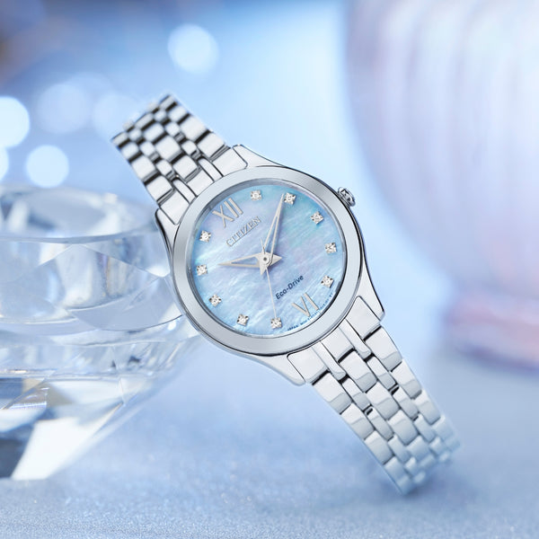 This timepiece will seamlessly fit into your wardrobe with its stylish stainless-steel bracelet. Sustainably powered by any light with Citizen Eco-Drive technology.