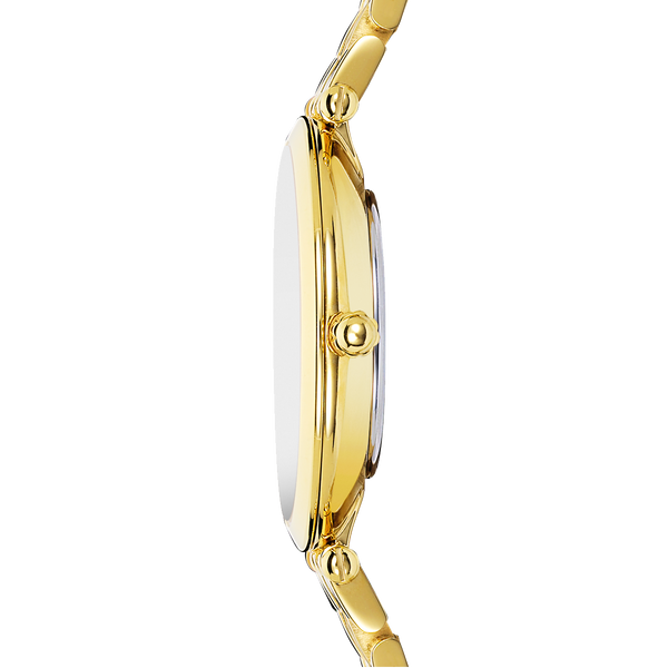 Strap material and colour: Stainless steel gold tone