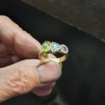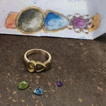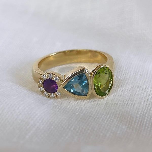 A bespoke peridot, aquamarine & amethyst ring created for our customer.