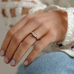 Introducing our Radiant Cut Pink Diamond Ring, featuring a 1.38ct pink lab grown diamond, accented by baguette cut white diamonds. We had this modern art deco design in mind when we sourced this beautiful pink lab diamond. A radiant cut stone, chosen for its incredible sparkle and blush pink tone. Handcrafted from start to finish by our Goldsmiths, in 18ct white gold.