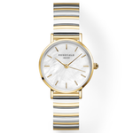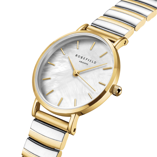 The Small Edit Duotone Watch is the Rosefield's newest iconic two tone style. The polished timepieces with glossy mixed metal link bracelets exude "understated luxury."