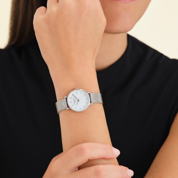 The Small Edit Watch is the Rosefield's newest iconic style. The polished timepieces with glossy metal link bracelets exude "understated luxury."